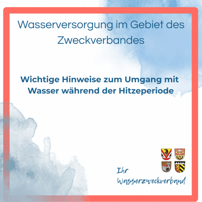 aktuell befinden wir uns in einer anhaltenden Hitzeperiode, die sich laut Wetterprognosen noch einige Zeit hinziehen wird. Dringend benötigter Regen bleibt leider aus. Die Situation im Verbandsgebiet ist dank der Schüttung unserer Brunnen und der Tatsache, dass der Zweckverband auch über zwei Tiefbrunnen verfügt, derzeit nicht kritisch. Jedoch möchten wir die aktuellen Gegebenheiten zum Anlass nehmen, um Sie zu sensibilisieren, dass es sich bei Wasser um hohes Gut handelt, welches sorgsam behandelt werden muss.